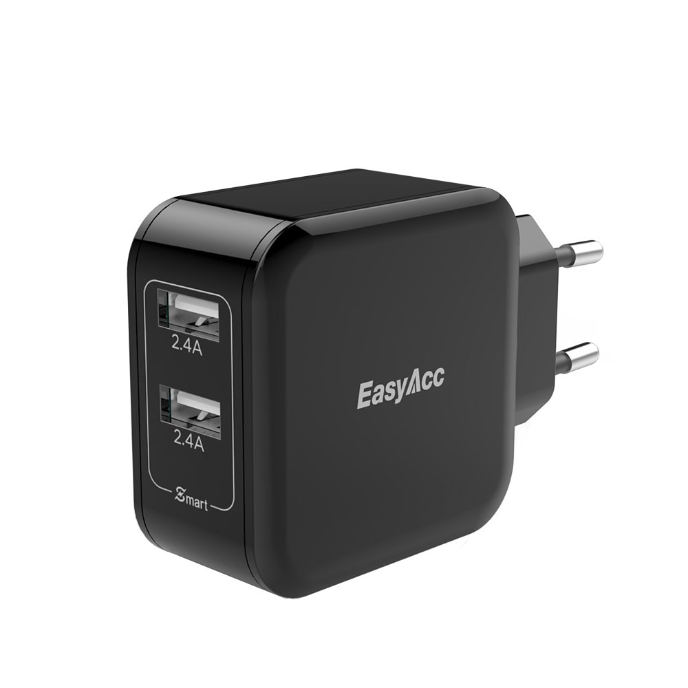 EasyAcc Caricabatterie da Parete 24W 2 Port USB Caricatore da Muro Power Adattatore Portatile per iPhone iPad Samsung Galaxy S6 Edge S5 e Altri Smartphone Tablet - Nero