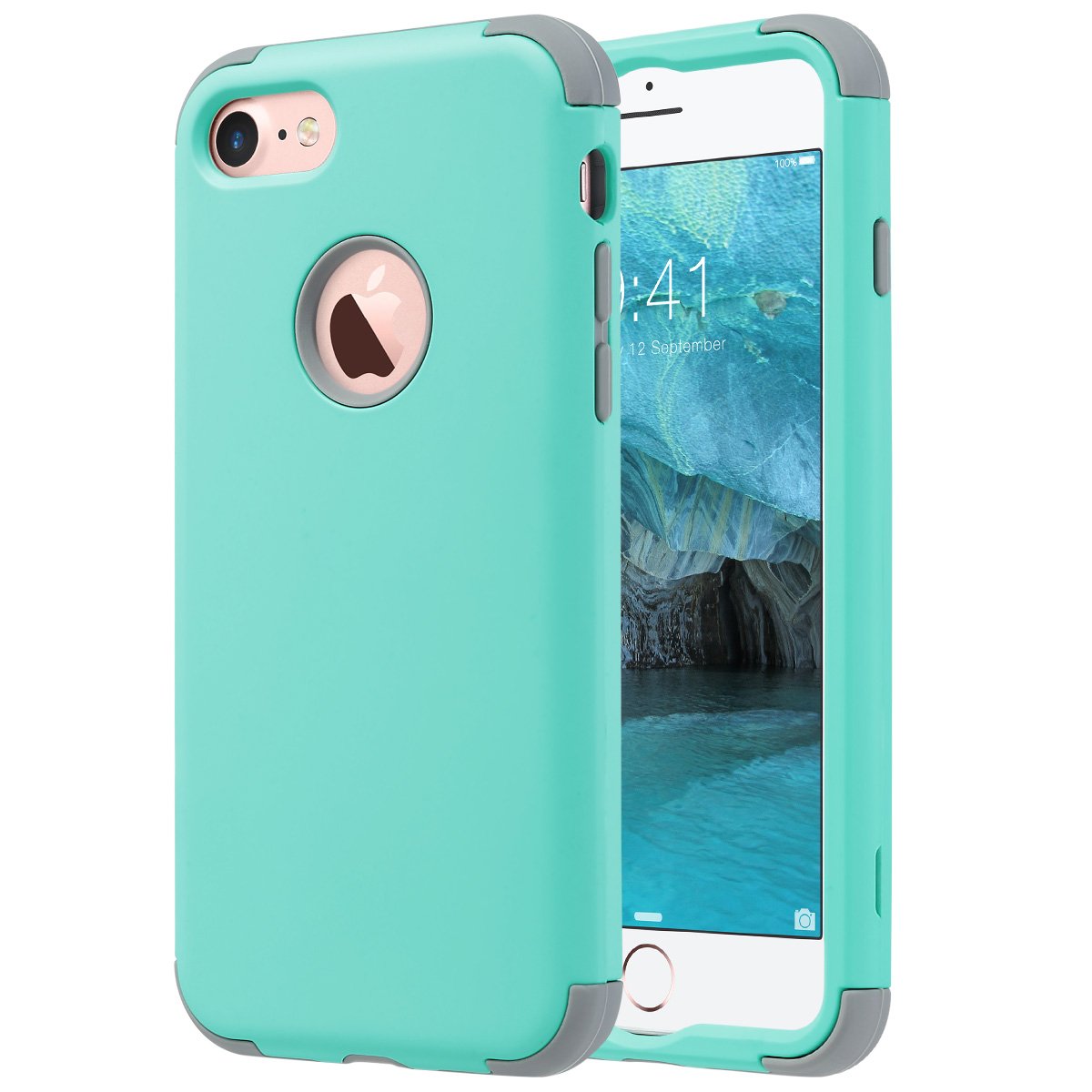 Custodia iPhone 7, ULAK iPhone 7 Cover ibrida a 3 strati in silicone a shell super protettiva prova di collisione case cover per Apple iPhone 7 (4,7pollici) -(Mint + Grigio) Recensioni